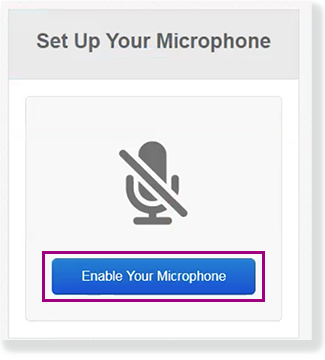 If the test requires audio, click Enable Your Microphone to set it up. Follow instructions to on the Test Your Microphone window to select an available microphone, record audio, and play it back.