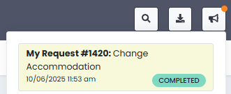 - Once approved, the accommodation will be assigned to the student. A red dot on the Notifications icon in the navigation bar will indicate an alert when the request is either granted or rejected. Select the icon to see notifications. You can select the notification to access My Requests