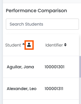 Use the Identifier Column icon to show or hide the Student Identifier. Exports will include the identifier regardless of view.