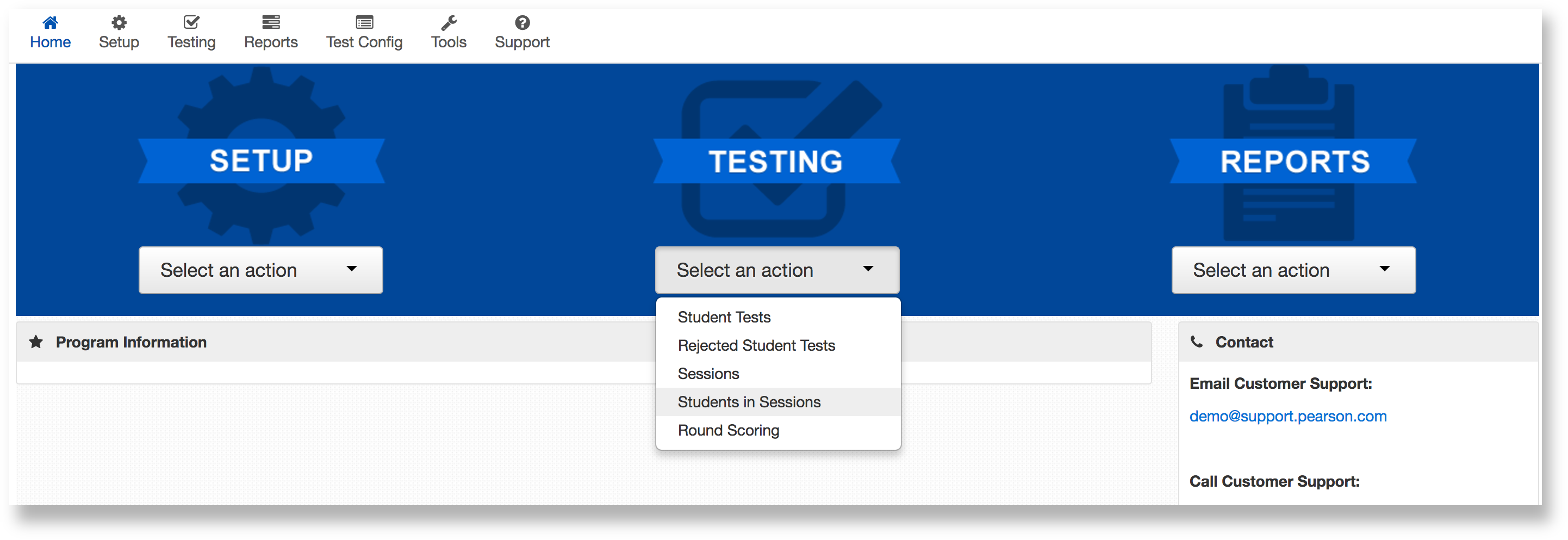 From Testing go to Students in Sessions.